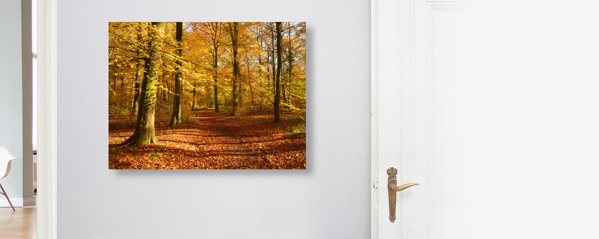 Herbstwald auf Forex im Format Ihrer Wahl als Direktdruck oder als Fineart matt oder glänzend. Federleichte Optik & ein extrem homogenes Druckbild machen Forex zu einem echten Geheimtipp.