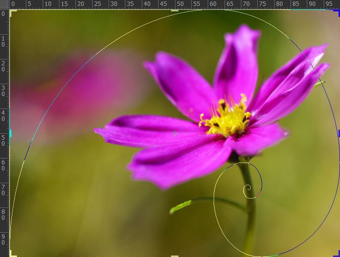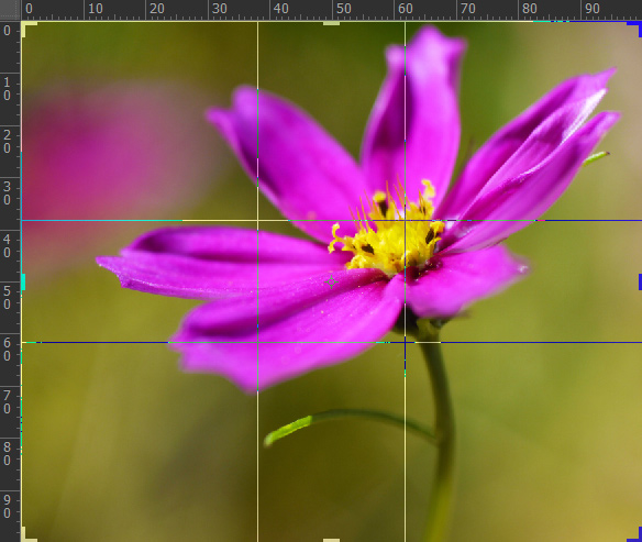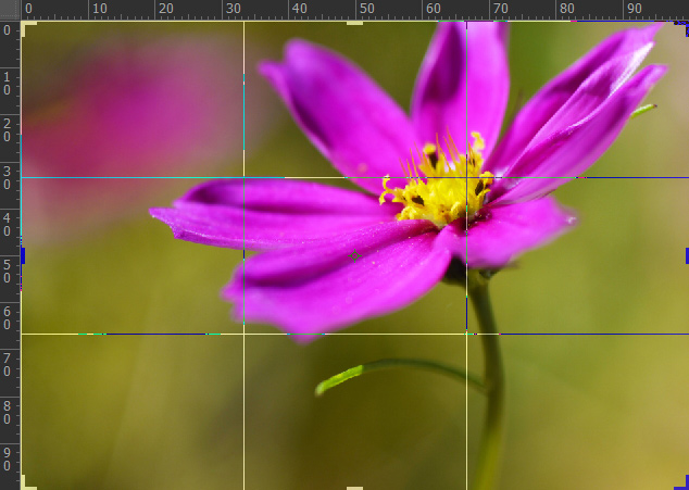 Aquí la herramienta de recorte creó una división de la imagen según la proporción áurea. Las líneas de orientación están a 38,2% y 61,8% de los bordes de la imagen.